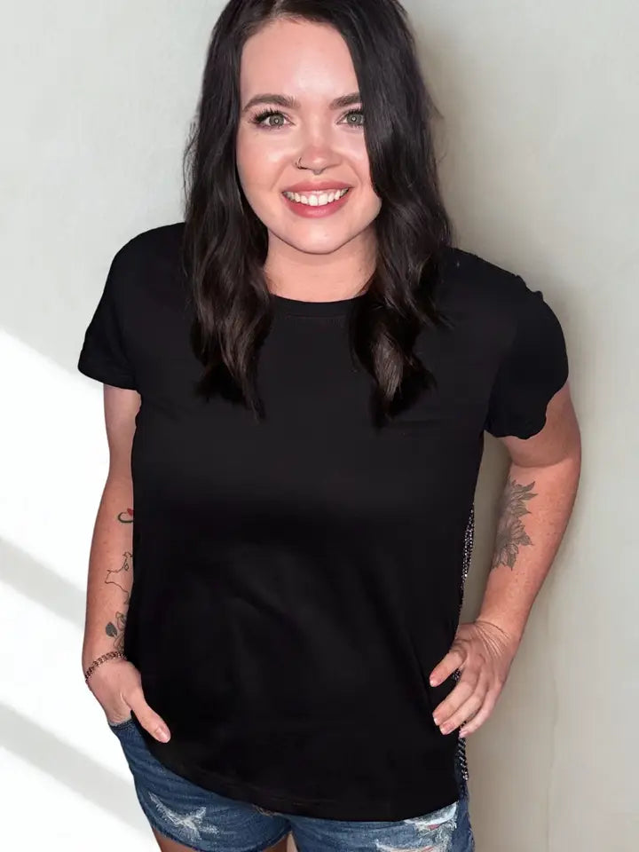 Make a statement wherever you go with the Leave A Little Sparkle Top. Its eye-catching rhinestone back adds a touch of glamour, reflecting light beautifully with every movement. Crafted from soft, stretchy fabric, this oversized top delivers a flattering fit and all-day comfort. Ideal for occasions when you want to shine brilliantly without compromising ease and style.