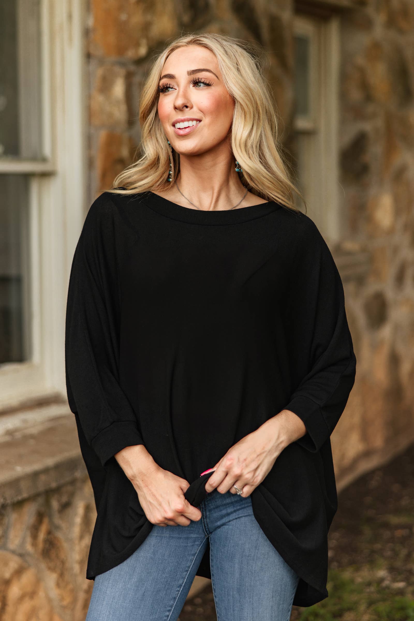 Slip into ultimate comfort with this lightweight hacci top, perfect for your daily wear. Designed with a flattering round neckline and relaxed dolman sleeves, it drapes beautifully for an easygoing silhouette.